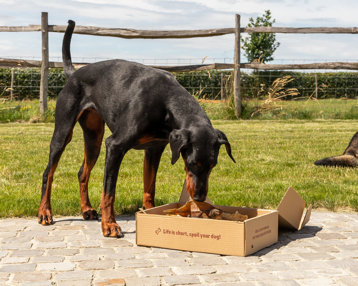 Wij stellen met zorg een natuurlijk snackpakket samen, volledig afgestemd op jouw hond. Zo geef je altijd precies wat jouw hond nodig heeft.